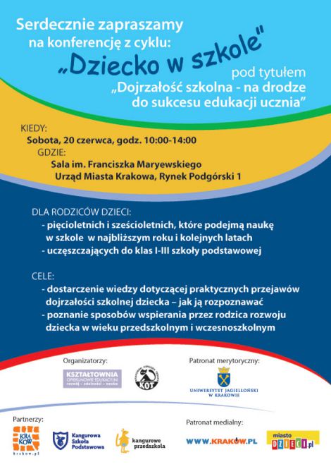 Pierwszy w Krakowie cykl konferencji skierowany do rodzicw, poruszajcy wane tematy dotyczce dziecka w szkole. Inicjatywa jest zaproszeniem do dialogu.