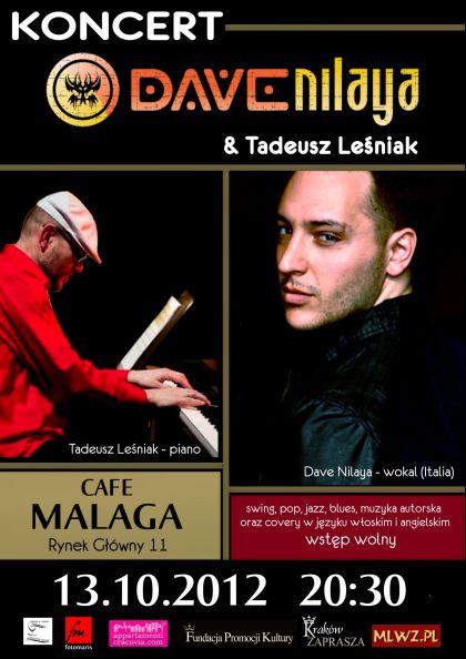 Cafe Malaga Rynek Główny 11 zaprasza na koncert włosko-polsko polskiej formacji Dave Nilaya Duet, w składzie: