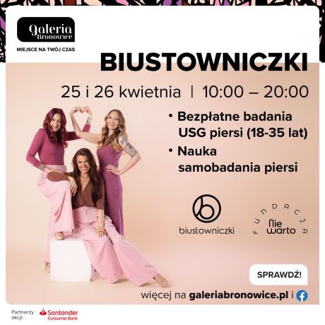 „Biustowniczki” ponownie odwiedzają największe polskie miasta, badają i edukują. Kolejnym przystankiem na ich trasie będzie Kraków, gdzie zameldują się już w ten weekend, 25 i 26 kwietnia. Dwudniowe wydarzenie tradycyjnie odbędzie się w Galerii Bronowice, w której na uczestniczki czekać będą dwa gabinety mobilne.