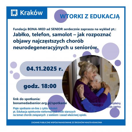 Wykład on-line "Jabłko, telefon, samolot – jak rozpoznać objawy najczęstszych chorób neurodegeneracyjnych u seniorów”