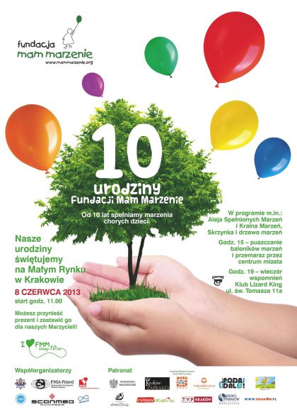 8 czerwca o godz. 11.00 na Maym Rynku rozpoczn si uroczyste obchody urodzin jednej z najprniej dziaajcych organizacji pozarzdowych w Polsce Fundacji Mam Marzenie. Jej celem jest spenianie nawet tych wydawaoby si niemoliwych - ycze ciko chorych dzieci. Strategicznym partnerem Fundacji oraz obchodw jest krakowskie centrum handlowe Bonarka City Center.