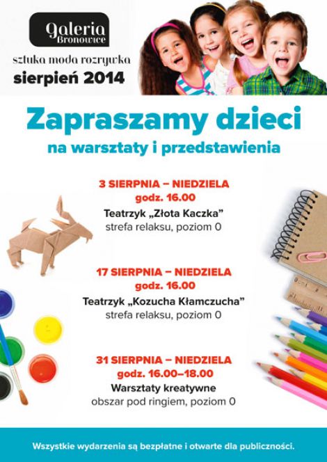 Widzimy si w kad niedziel o 12:00. Po projekcjach zaplanowalimy ciekawe warsztaty dla naszych milusiskich. Bilety 10 z.