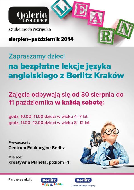 Gry i zabawy jzykowe z Berlitz Krakw odbywaj si w kad sobot do 11 padziernika w godzinnych blokach: od(...)  ... więcej »