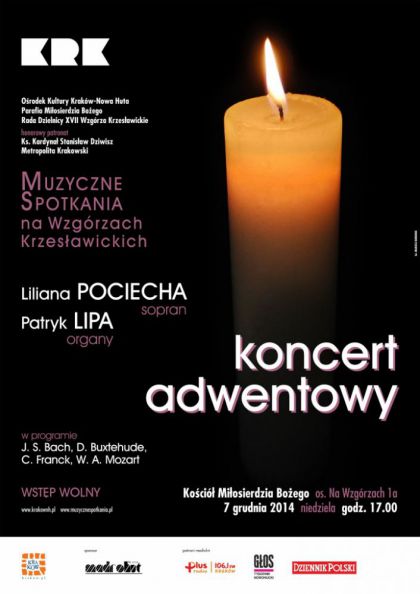 W Kociele Miosierdzia Boego (os. Na Wzgrzach 1a) 7 grudnia 2014 r. o godz. 17.00 odbdzie si koncert adwentowy, w programie ktrego znajd si m.in. utwory Jana Sebastiana Bacha, Wolfganga Amadeusza Mozarta, Dietricha Buxtehude czy Cesara Francka.