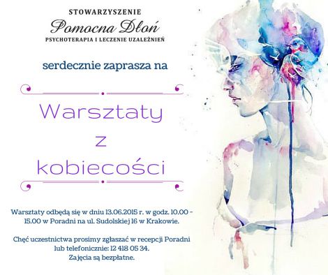 Stowarzyszenie Pomocna Do serdecznie zaprasza wszystkie Panie na bezpatne "Warsztaty z kobiecoci", ktre odbd si w sobot 13 czerwca w godz. 10.00-15.00 w Poradni na ul. Sudolskiej 16.