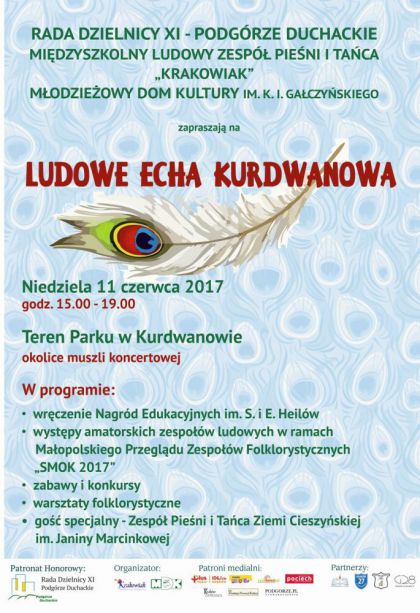 Midzyszkolny Ludowy Zesp Pieni i Taca Krakowiak we wsppracy z Modzieowym Domem Kultury im. K.I. Gaczyskiego organizuje wydarzenie plenerowe LUDOWE ECHA KURDWANOWA.