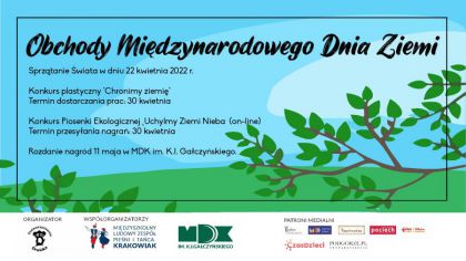 MLZPiT Krakowiak wraz ze Stowarzyszeniem Drwinka i MDK im. K.I. Gaczyskiego pragnie zaprosi na 3 wydarzenia organizowane w ramach obchodw Midzynarodowego Dnia Ziemi. W programie: