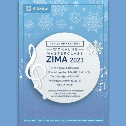Zapraszamy dzieci w wieku od 12 do 21 lat na zimowe zajęcia wokalno-aktorskie w formule kursu mistrzowskiego.