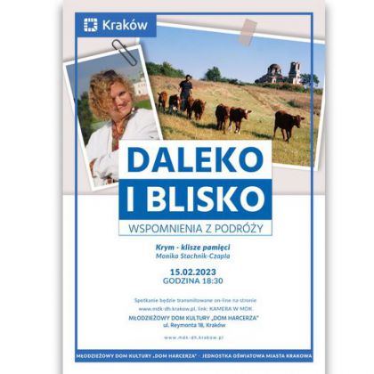 Cykl „Daleko i blisko” to niezwykłe spotkania z podróżnikami, fotografami, osobami ciekawymi świata i ludzi. Zapraszamy osoby, które chcą podzielić się swoimi wspomnieniami z podróży. Prezentujemy zdjęcia z wypraw, a zaproszeni prelegenci wzbogacają te pokazy swoimi opowiadaniami. Na naszych spotkaniach nie brakuje również doznań kulinarnych, gdyż opowieści są dodatkowo okraszone poczęstunkiem związanym z omawianym miejscem czy regionem. Poczęstunek ten sponsoruje Dzielnica V – Krowodrza.
