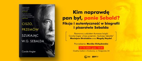 rozmowa z udziałem tłumacza książki Carole Angier „Ciszo, przemów. Szukając W. G. Sebalda” Maciejem Stroińskim oraz Magdą Heydel. Spotkanie poprowadzi Monika Ochędowska