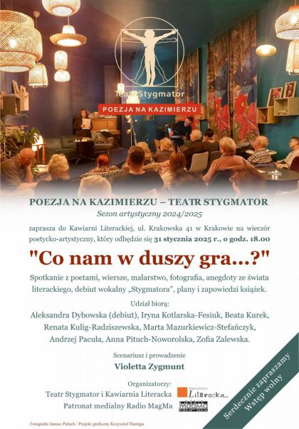 | "Co nam w duszy gra..." z cyklu POEZJA NA KAZIMIERZU- Teatr Stygmator zaprasza |
