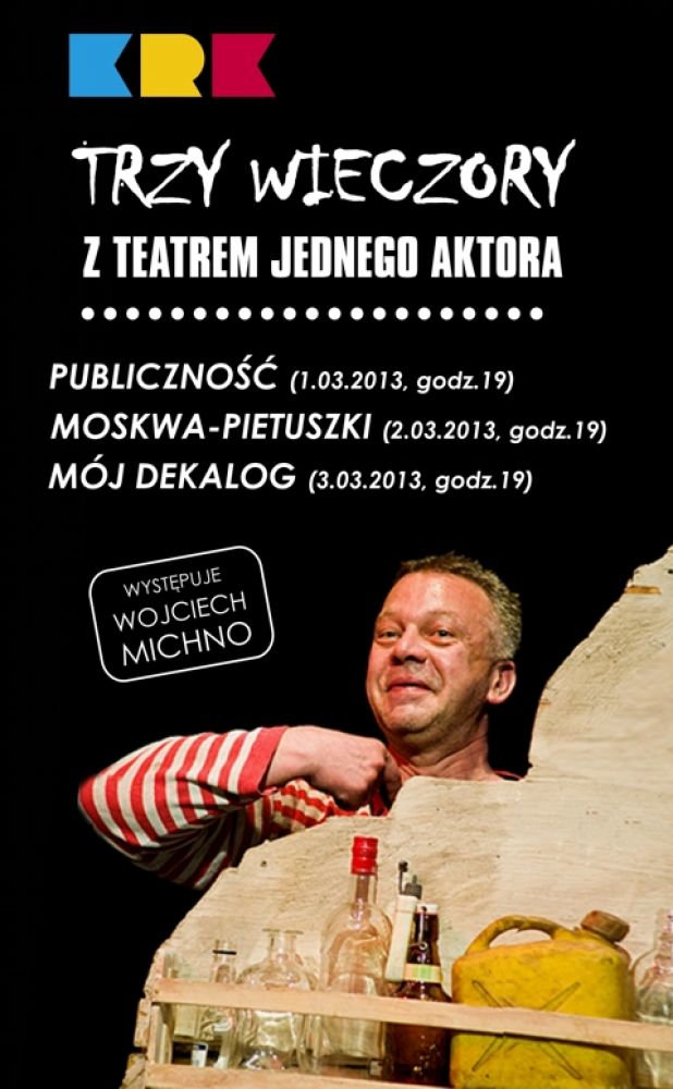 W ramach mini-festiwalu teatralnego zobaczyć będzie można trzy monodramy : Publicznoœć według Petera Handke, Moskwa- Pietuszki według Wieniedikta Jerofiejewa oraz Mój Dekalog według Mirosława Koniecznego.