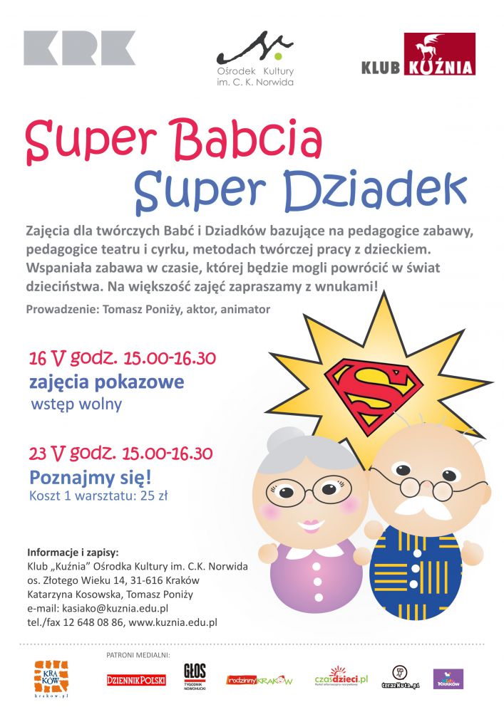 Na większoć zajęć zapraszamy z wnukami. Prowadzenie: Tomasz Poniży, aktor, animator.