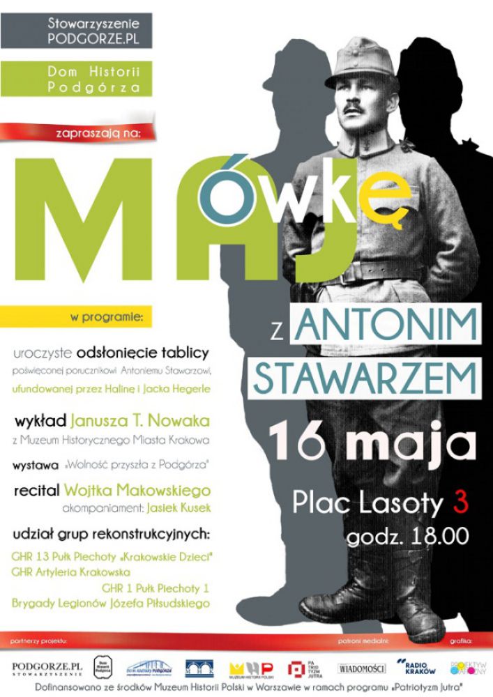 16 maja na pl. Lasoty 3 odbędzie się uroczyste odsłonięcie tablicy powięconej pamięci porucznika Antoniego Stawarza oraz wydarzenia towarzyszšce koncerty i pokazy grup rekonstrukcyjnych.