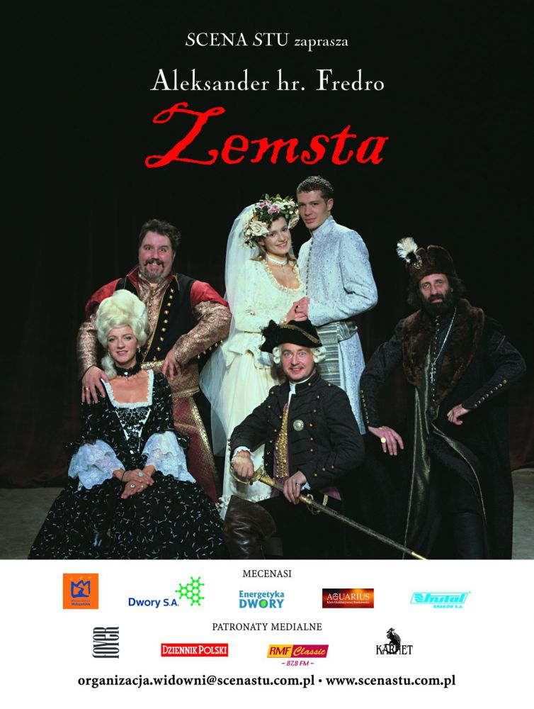 Krzysztof Jasiński postanowił nieco odwieżyć zakurzonš lekturę szkolnš, jakš stała się Zemsta Aleksandra Fredry. W jego inscenizacji komedia o naszych przywarach i słabostkach skrzy się bezpretensjonalnym humorem i wietnie nawišzuje kontakt z młodš widowniš, która zaskakujšco żywiołowo reaguje na klasycznš fredrowskš frazę. Jednak głównš siłš tego przedstawienia sš fantastyczni aktorzy. Tworzš galerię wyrazistych bohaterów, którzy, choć skryci pod stylowymi kostiumami, bardzo przypominajš współczesne nam postacie...