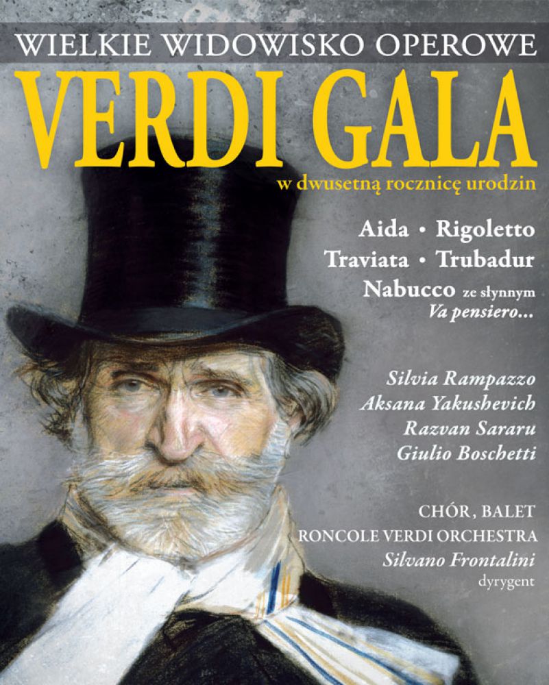 „Verdi Gala” to przygotowany z rozmachem spektakl muzyczno-sceniczny, który łšczy w sobie najpiękniejsze fragmenty najpiękniejszych oper m.in.: La Traviata, Rigoletto, Aida, Nabucco.