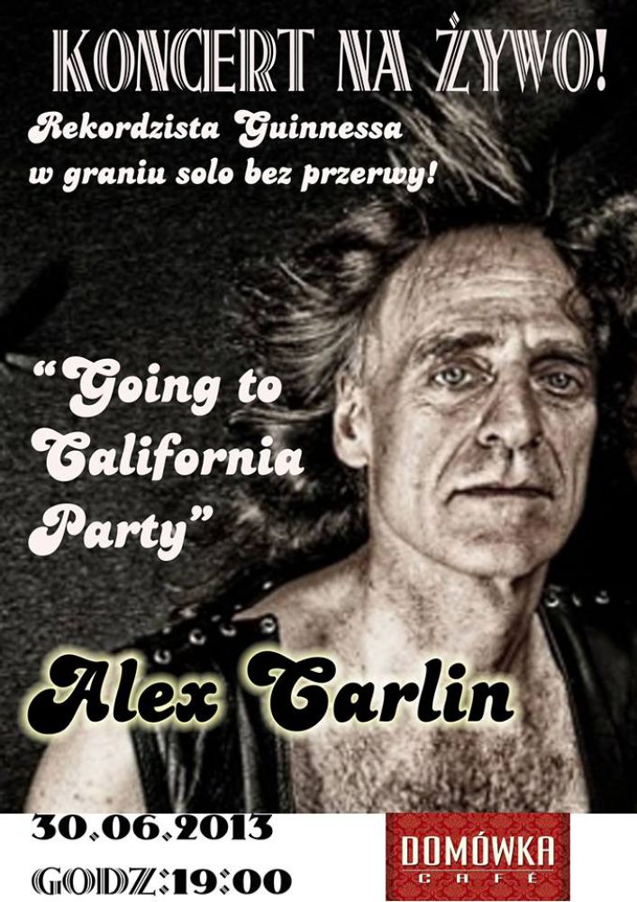 Gitarzysta, wokalista, pianista i perkusista w jednym. Alex Carlin amerykański rock and rollowiec, który przez wiele lat mieszkał w Krakowie 30.06.2013 r. zagra na domówkowej scenie! Muzyk o wielu obliczach, o którym zwykło się mawiać, że jest żywš szafš grajšcš na scenie występuje nieprzerwanie od połowy lat 70. Jest m.in. współautorem przeboju Rocknroll Is Dead The Rubinoos. Od 1999 r. Carlin był gitarzystš i wokalistš punkowego Rut Host, polskim akcentem w twórczoci Alexa jest projekt pod nazwš The Henchmen.