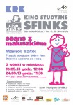 Podczas cyklu SEANS Z MALUSZKIEM proponujemy wspólne, dopołudniowe projekcje dobrych filmów, na które zapraszamy rodziców wraz z dziećmi gwarantujšc szczególnie dobrany repertuar (kino o wysokich walorach zdjęciowych i muzycznych, bez scen przemocy), opiekę dla dzieci w wieku 2-4 lat, zaplecze organizacyjne przyjazne rodzicom (przewijak dla najmłodszych, bezpieczne miejsce na wózki) a także przyjemny półmrok na sali kinowej i ciszony dwięk dla tych rodziców, którzy zechcš oglšdnšć film w towarzystwie swojej pociechy. Spotkania odbywajš się w Kinie Sfinks dwa razy w miesišcu, w godzinach dopołudniowych.