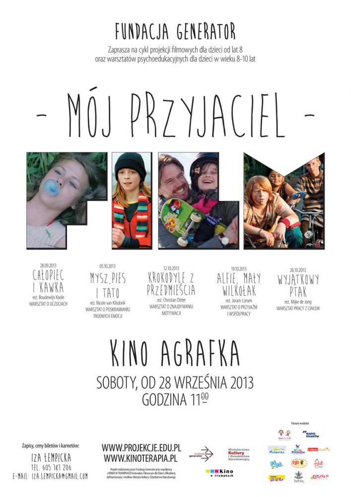 W dniach 28 wrzenia 26 padziernika, w formie cotygodniowych spotkań odbędš się warsztaty w dziesięciu miastach Polski. W Krakowie, od 28 wrzenia, zapraszamy do kina Agrafka. Każde spotkanie obejmie pokaz specjalnie dobranego filmu fabularnego oraz warsztat psychoedukacyjny. Ma on na celu wspieranie dzieci w rozwoju umiejętnoci społecznych