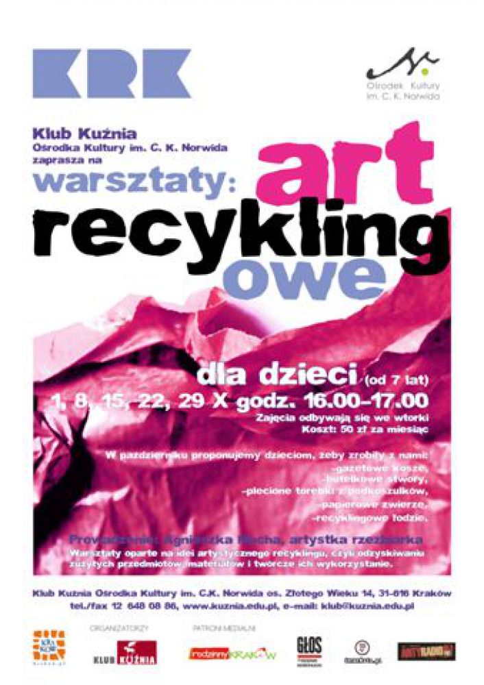Warsztaty opartesš na idei artystycznego recyklingu, czyli odzyskiwaniu zużytych przedmiotów, materiałów i twórcze ich wykorzystanie.