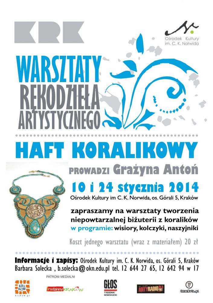 Warsztaty odbywajš się w 2 pištki w miesišcu, w godzinach 17.00-19.00, cena za zajęcia wraz z materiałem 20 zł. Prowadzenie: Grażyna Antoń www.tipika.pl