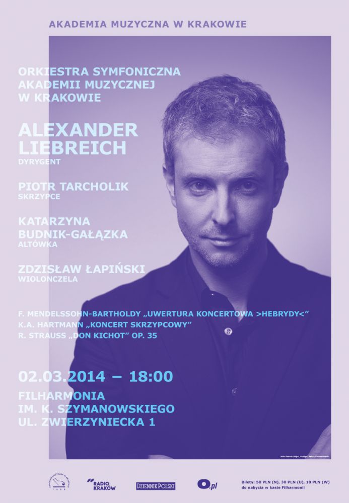 Orkiestrę Symfonicznš Akademii Muzycznej poprowadzi znakomity niemiecki dyrygent Alexander Liebreich, pełnišcy funkcję dyrektora artystycznego i pierwszego dyrygenta NOSPR w Katowicach. Solistami w tym koncercie będš: skrzypek Piotr Tarcholik na co dzień koncertmistrz NOSPR, altowiolistka Katarzyna Budnik-Gałšzka zwišzana z Uniwersytetem Muzycznym im. Fryderyka Chopina w Warszawie oraz wiolonczelista Zdzisław Łapiński rektor Akademii Muzycznej w Krakowie.