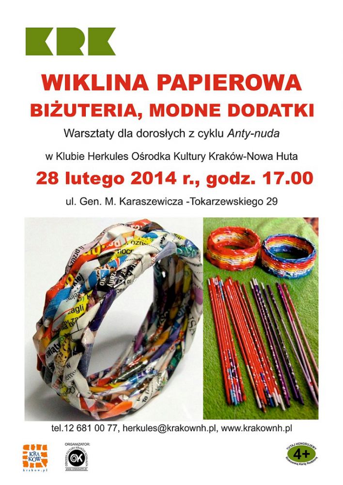 Klub Herkules Oœrodka Kultury Kraków-Nowa Huta (ul. Gen. M. Karaszewicza-Tokarzewskiego 29) zaprasza na warsztaty z cyklu Anty – nuda, które odbędš się 28 lutego o godz. 17.00.
