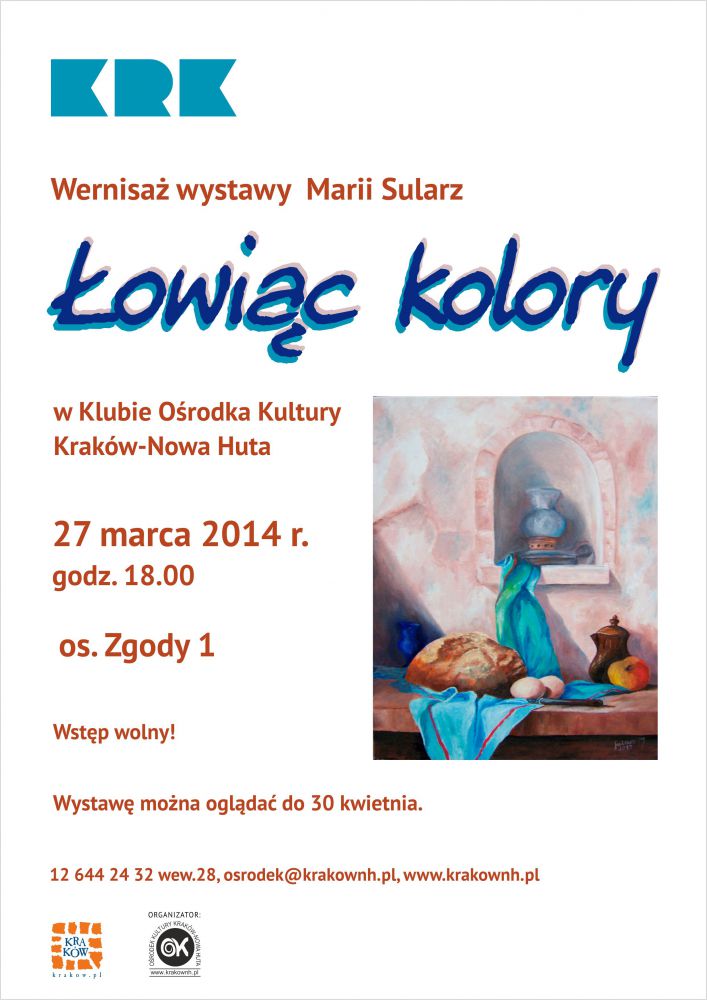 Klub Oœrodka Kultury Kraków-Nowa Huta (os. Zgody 1) zaprasza 27 marca o godz. 17.00 na wernisaż Marii Sularz, artystki od urodzenia zwišzanej z Krakowem, dla której to miasto jest głównym tematem i Ÿródłem inspiracji.