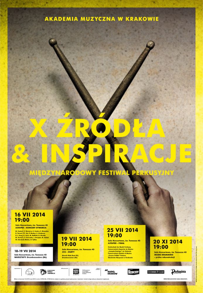 Po raz kolejny, już dziesišty, a zarazem drugi w lipcu, odbędzie się Międzynarodowy Festiwal Perkusyjny ródła i Inspiracje. Festiwal poprzedzony będzie III edycjš Kursów Perkusyjnych ASTAPER, prowadzonych wspólnie przez cztery europejskie uczelnie muzyczne: Musik Hohschule Freiburg, Conservatorio Superior J. Rodrigo z Valencji, Conservatorio C. Pollini z Padwy i Akademię Muzycznš z Krakowa. Jednym z elementów Festiwalu będzie koncert przygotowany przez uczestników kursów, studentów tychże uczelni, pod okiem wybitnych pedagogów perkusistów, profesorów: Bernharda Wulffa, Massimo Pastore i Jana Pilcha. Przez dwa lipcowe tygodnie Akademia Muzyczna w Krakowie będzie rozbrzmiewać muzykš perkusyjnš w międzynarodowym wykonaniu. Z zaproszonych goci usłyszymy i zobaczymy bo aspekt wizualny jest nieodłšcznš atrakcjš muzyki perkusyjnej wybitnych przedstawicieli różnych odmian muzyki perkusyjnej.