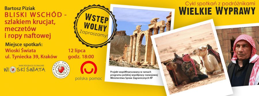 Krajobraz kreowany przez naturę kontra wizja narzucona przez media. Irak, Syria i Jordania to wbrew pozorom nie tylko konflikty i życie w cišgłym zagrożeniu atakiem terrorystycznym. W czasie pierwszego spotkania z serii „Wielkie Wyprawy”, organizowanego w Wioskach Œwiata – Parku Edukacji Globalnej w Krakowie, Bartosz Piziak – podróżnik i pasjonat Bliskiego Wschodu - pokaże bogactwo kultury majšcej odzwierciedlenie we wspaniałej architekturze oraz urzekajšcych krajobrazach i zaprzeczy stereotypowi przypisywanemu przez doniesienia medialne.