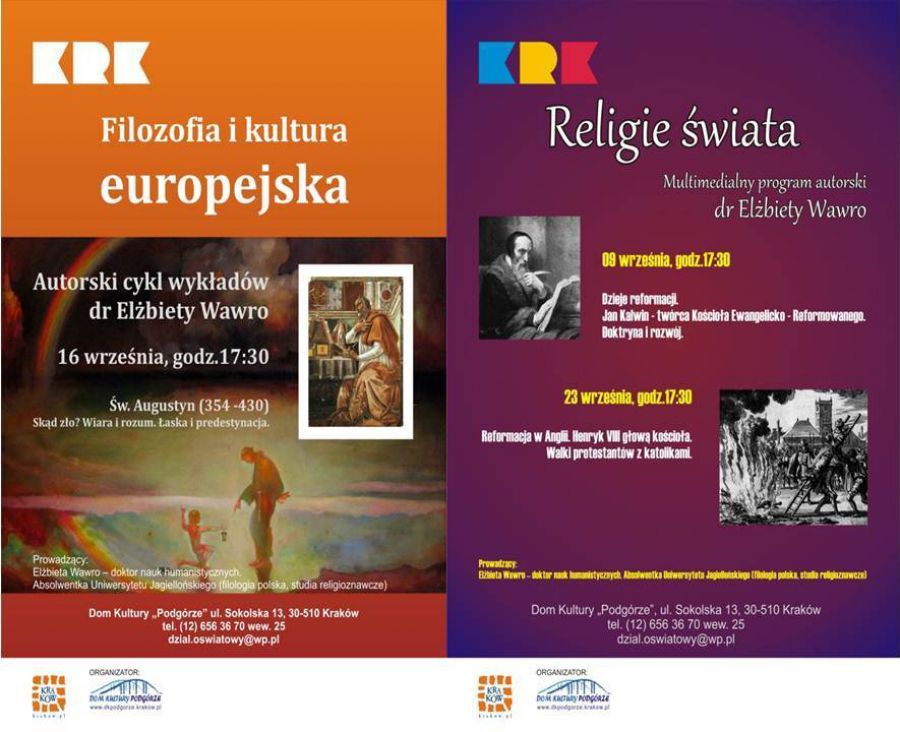 Dom Kultury Podgórze zaprasza na wykłady z cyklu „Religie Œwiata” oraz „Filozofia i kultura europejska”.