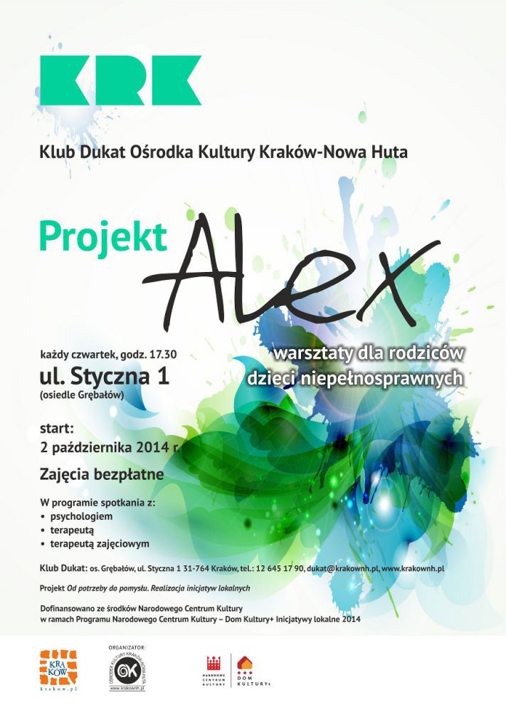 Klub Dukat Orodka Kultury Kraków-Nowa Huta zaprasza do udziału w Projekcie Alex, w ramach którego odbędš się spotkania rodziców majšcych dziecko z upoledzeniem ruchowym lub umysłowym z psychologiem, terapeutš oraz animatorem.