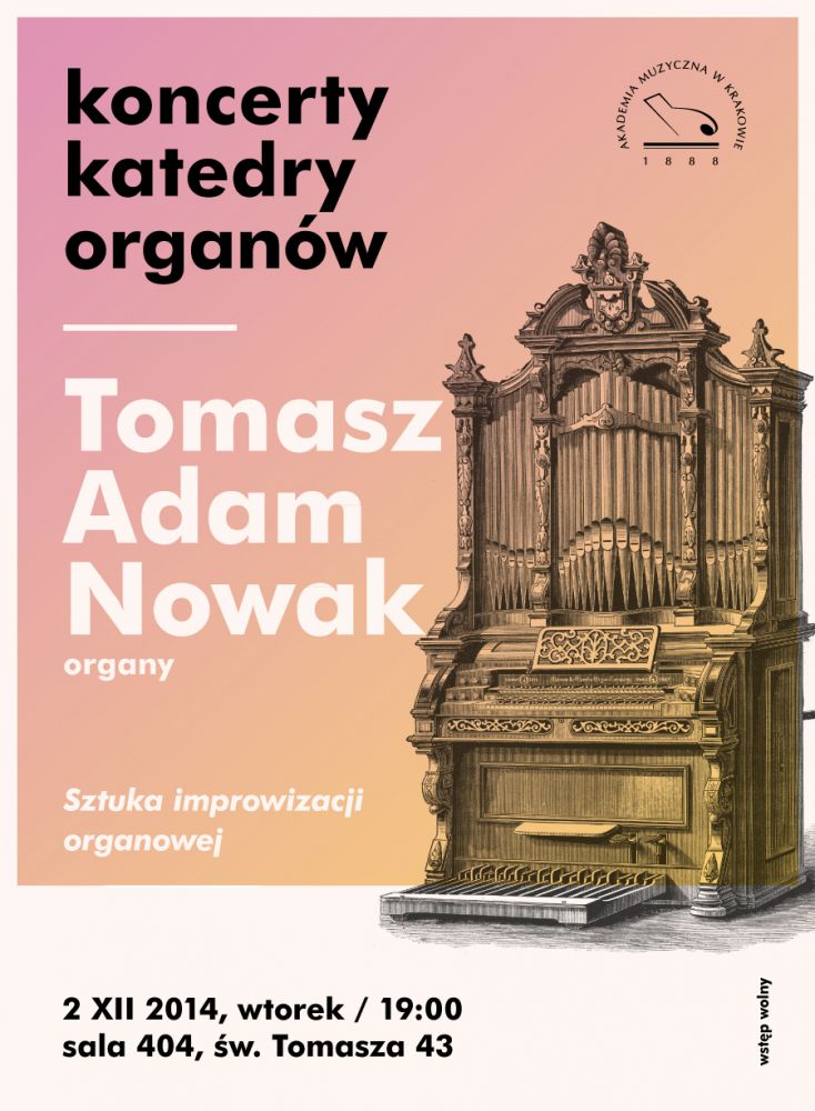 W imieniu Katedry Organów Akademii Muzycznej w Krakowie serdecznie zapraszam Państwa Pedagogów oraz uczniów klas organów do udziału w warsztatach literatury organowej i improwizacji, które w dniach 1 i 2 grudnia bieżšcego roku poprowadzi wybitny organista, na co dzień zwišzany z Hochschule für Musik w Detmold oraz Lamberti-Kirche w Münster, prof. Tomasz Adam Nowak.