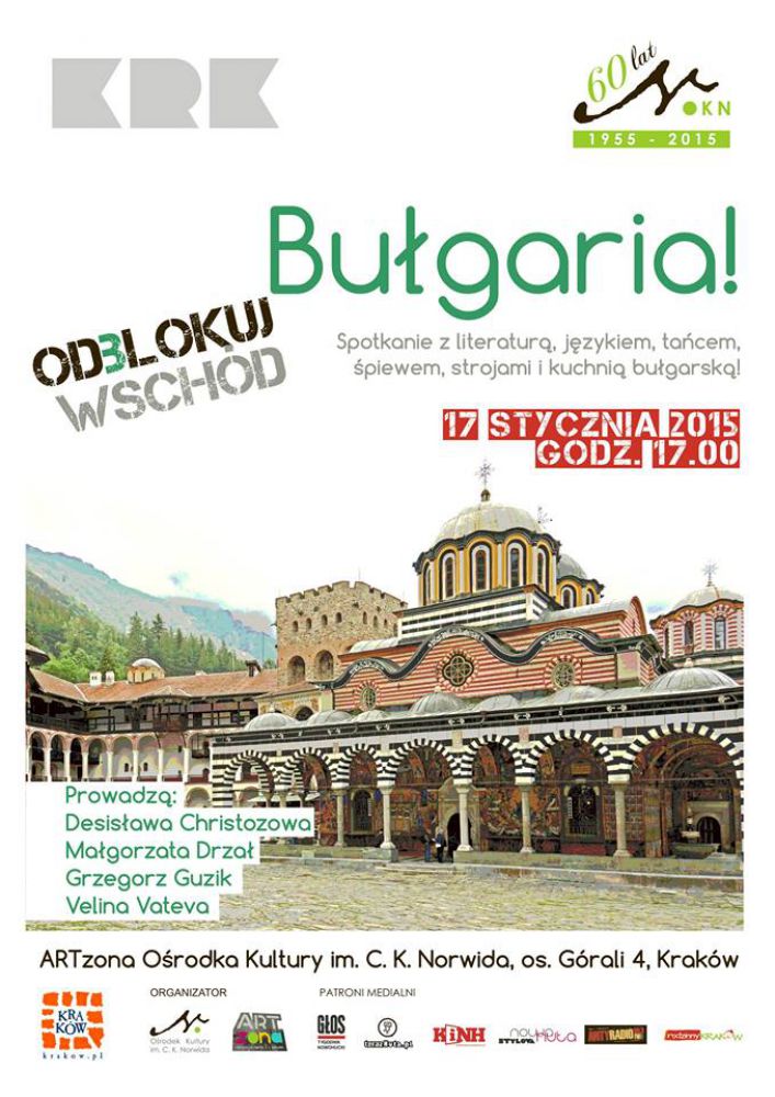 Do œwiata bułgarskiej kultury, literatury i sztuki zaprowadzš nas Desisława Christozowa, Małgorzata Drzał, Grzegorz Guzik, oraz Velina Vateva. Zapraszamy na spotkanie ze słowem, œpiewem, strojami i kuchniš bułgarskš.