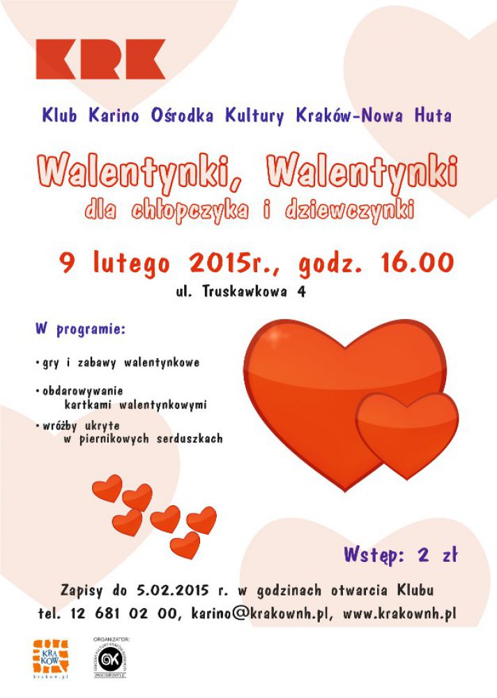 Walentynki to dzień w którym wszyscy obdarowujš się nawzajem upominkami. Tak też będzie podczas imprezy w Klubie Karino Oœrodka Kultury Kraków-Nowa Huta.