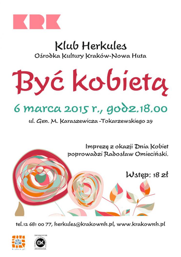 Klub Herkules Oœrodka Kultury Kraków-Nowa Huta jak co roku zaprasza Panie na spotkanie z okazji Dnia Kobiet. 6 marca o godz. 18.00 na uczestniczki imprezy czekać będzie wiele atrakcji m.in.: program kabaretowy w wykonaniu Radosława Omiecińskiego, zabawy i konkursy oraz słodki poczęstunek. Zapomnij na chwilę o codziennych obowišzkach i pozwól sobie na chwilę relaksu w miłej atmosferze.
