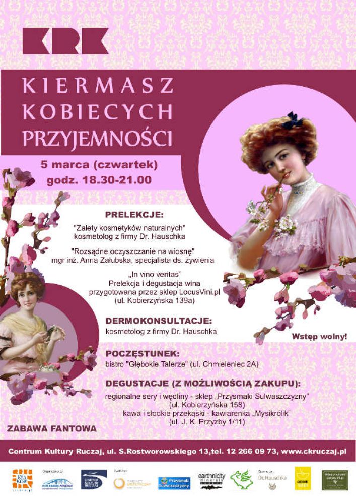 "Kiermasz kobiecych przyjemnoci" odbędzie się już po raz drugi. W tym roku na Panie czeka sporo atrakcji, m.in: prelekcje nt. kosmetyków naturalnych i zdrowego odżywiania, dermokonsultacje, degustacje, pyszny poczęstunek oraz zabawa fantowa.