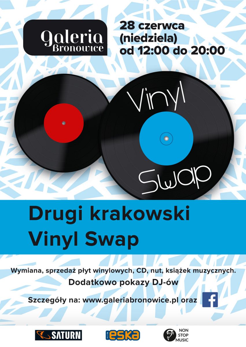 Po sukcesie 1. krakowskiego Vinyl Swap pora na drugie więto miłoników winyli! W samo południe 28 czerwca w Galerii Bronowice wystartuje muzyczna giełda, na której można będzie wymienić, sprzedać lub kupić płyty i mnóstwo innych, zwišzanych z muzycznym hobby, sprzętów. Bezpłatne, specjalnie przygotowane stoiska czekać będš w Galerii Bronowice w godz. 12 20.00.