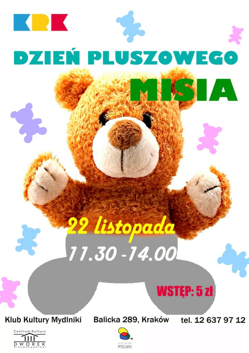 Zapraszamy do Klubu Kultury Mydlniki na Dzień Pluszowego Misia, podczas którego: