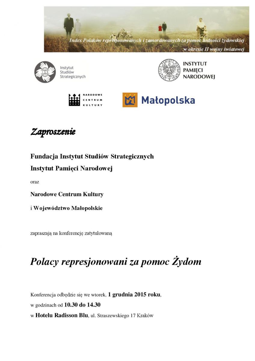 Grudniowa konferencja stanowi posumowanie i prezentację rezultatów programu "Index Polaków represjonowanych i zamordowanych za pomoc ludnoœci żydowskiej w okresie II wojny œwiatowej", realizowanego latach 2013 - 2015 przez Fundację Instytut Studiów Strategicznych oraz Instytut Pamięci Narodowej.