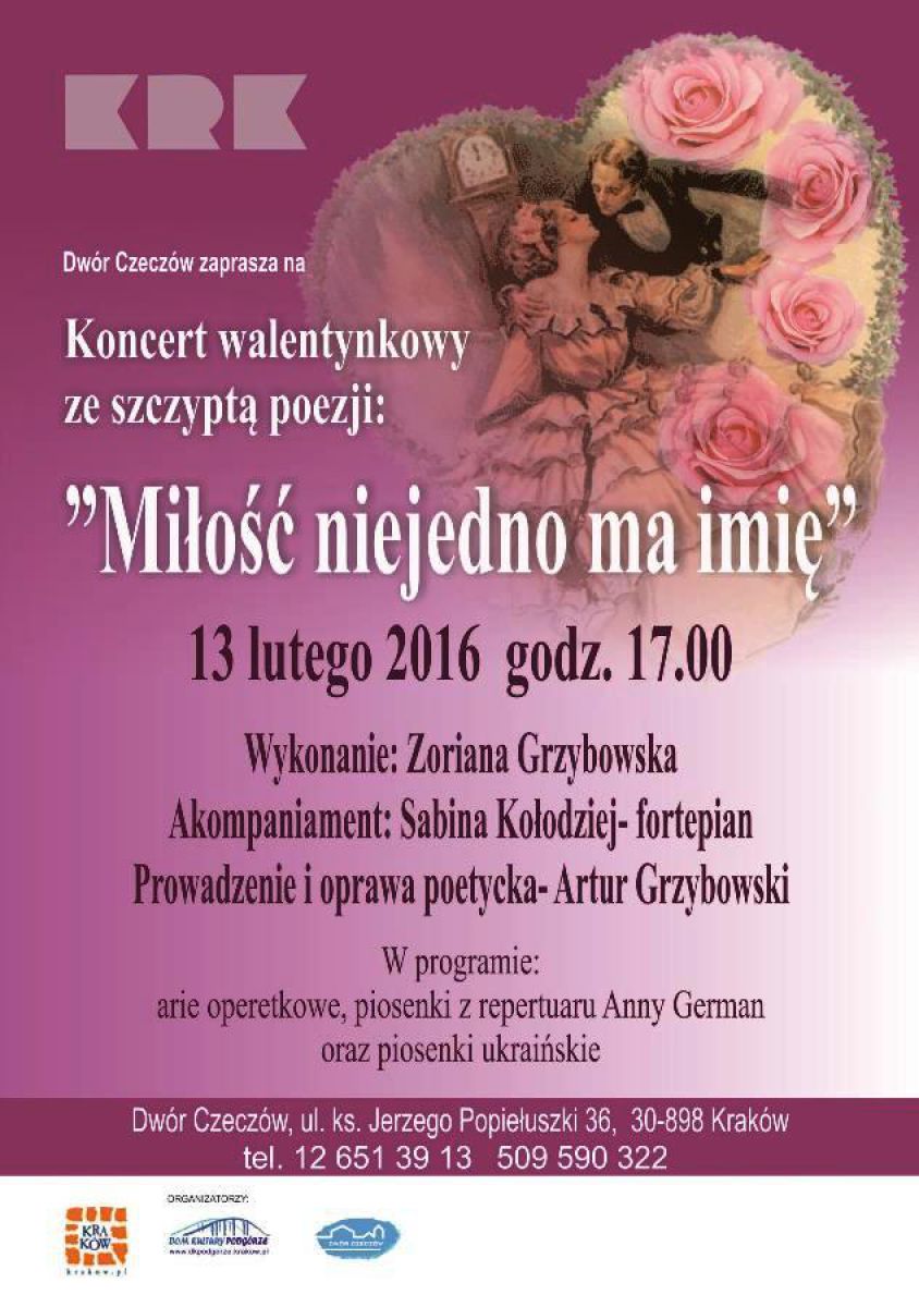 Zapraszamy do Dworu Czeczw na koncert walentynkowy ze szczypt poezji Wykonanie: Zoriana Grzybowska