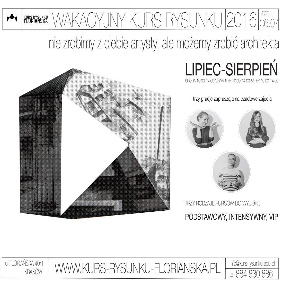Wakacyjne zajęcia w Szkole Rysunku Floriańska to coroczna tradycja od 2005 roku. Lekcje rysunku prowadzone sš w systemie wakacyjnym co tydzień, przez okres całych wakacji szkolnych czyli lipiec i sierpień trzy dni w tygodniu.