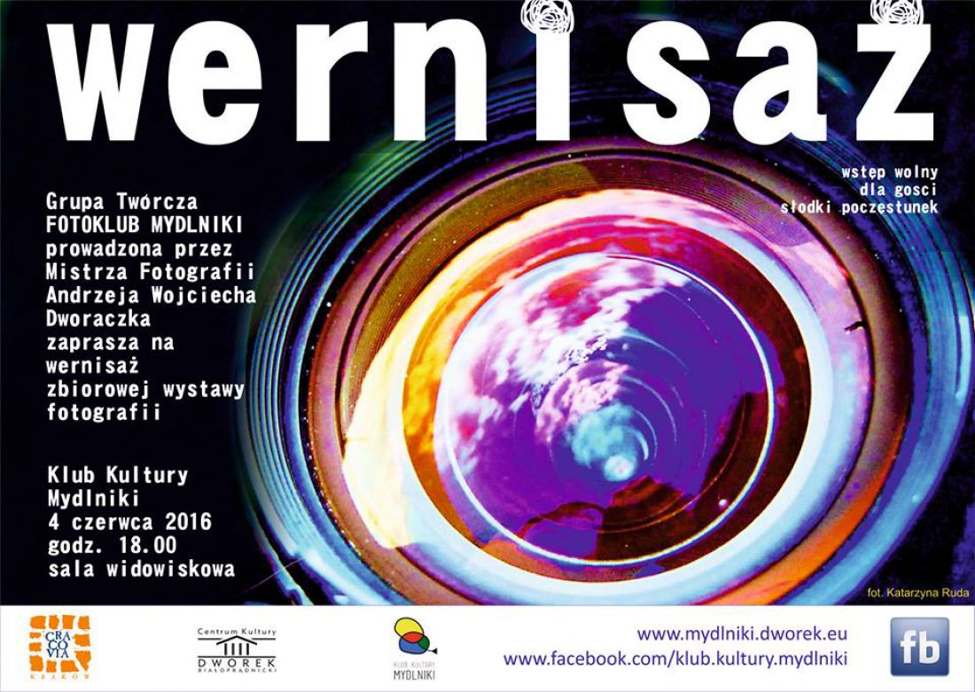 Grupa Twórcza FOTOKLUB MYDLNIKI prowadzona przez Mistrza Fotografii Andrzeja Wojciecha Dworaczka zaprasza na wernisaż zbiorowej wystawy fotografii.