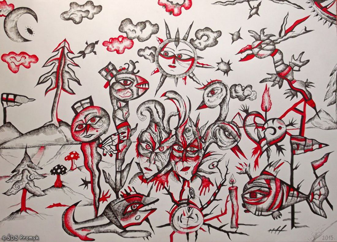 Czytaniu towarzyszyę bździe pokaz prac plastycznych pacjentów.