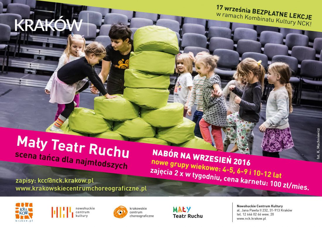 Mały Teatr Ruchu to innowacyjna propozycja dla najmłodszych, zakładajšca pracę artystycznš z dziećmi w wieku 4-12 lat, bazujšca na tańcu, ruchu i teatrze. Podstawowymi założeniami projektu sš: wprowadzanie dzieci w wiat sztuki performatywnej, zaznajomienie ich z tajnikami pracy scenicznej oraz kreatywny rozwój.