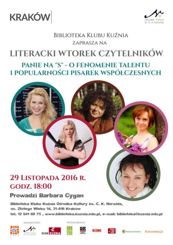 Zapraszamy na listopadowy Wtorek Literacki poœwięcony współczesnym pisarkom zarówno najbardziej znanym ale przede wszystkim najciekawszym literackim debiutantkom ostatnich lat. Spotkanie poprowadzi Barbara Cygan z Biblioteki Klubu KuŸnia OKN.