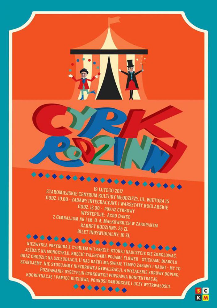 19 lutego 2017 r., godz. 10.00 warsztaty cyrkowe, godz. 12.00 spektakl