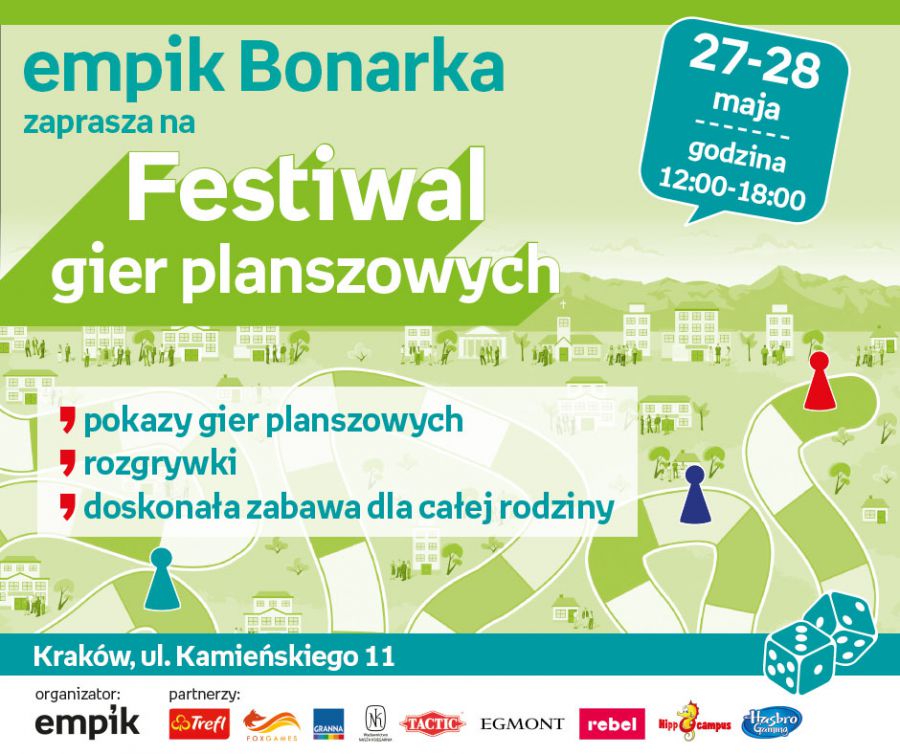 Podczas Festiwalu Gier Planszowych odbędš się warsztaty i pokazy, które pomogš zapoznać się zarówno z nowoœciami, jak i uznanymi, współczesnymi klasykami. Będzie można poznać gry, które potrafiš wcišgnšć na długie godziny, zachęcić do oderwania oczu od tabletów i komputerów. Chętni będš mieli okazję spróbować swoich sił w turniejach. Dla odwiedzajšcych organizatorzy wraz z wydawcami gier przygotowali nie tylko inspirujšce warsztaty i konkursy, ale również rabaty na wybrane pozycje.