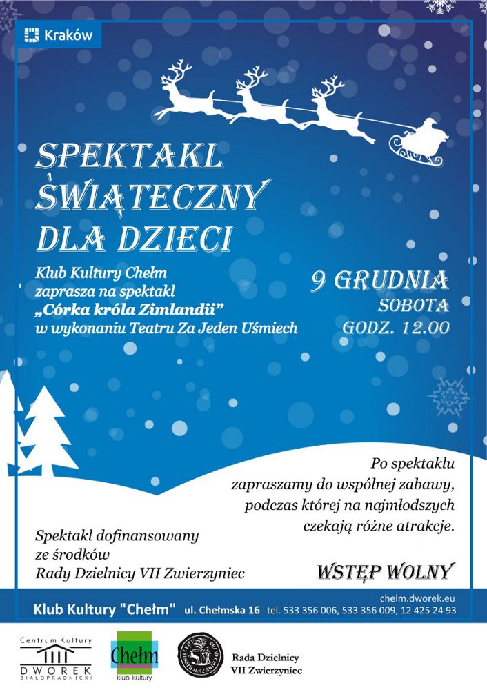Spektakl dofinansowany ze œrodków Rady dzielnicy VII Zwierzyniec.