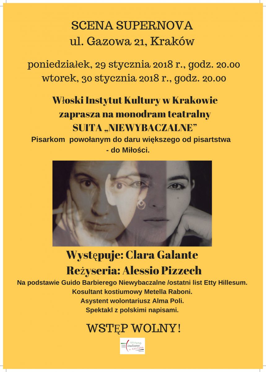 Włoski Instytut Kultury w Krakowie zaprasza na monodram teatralny